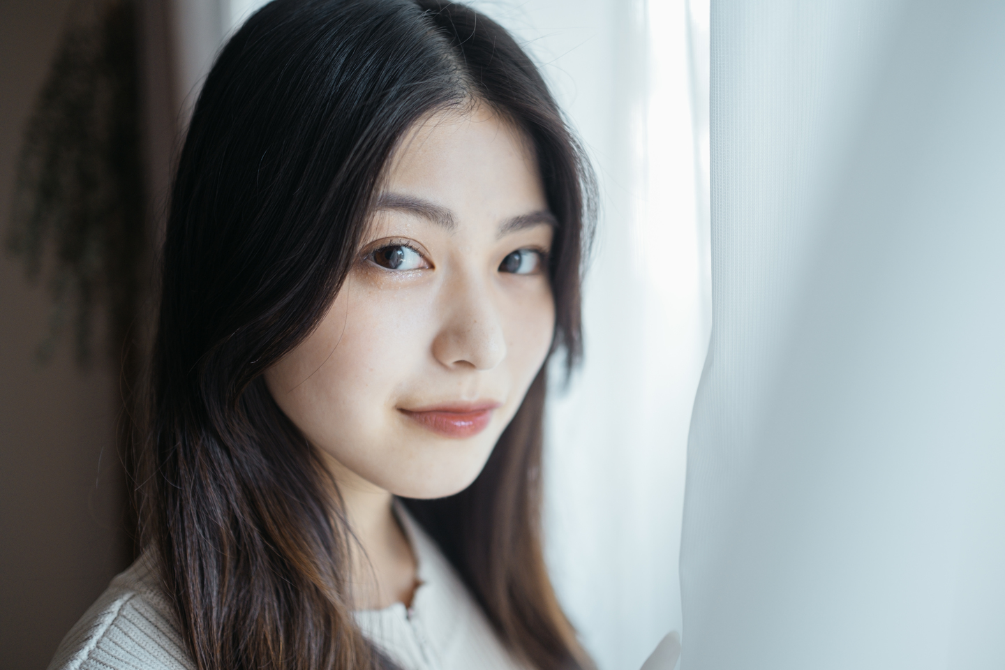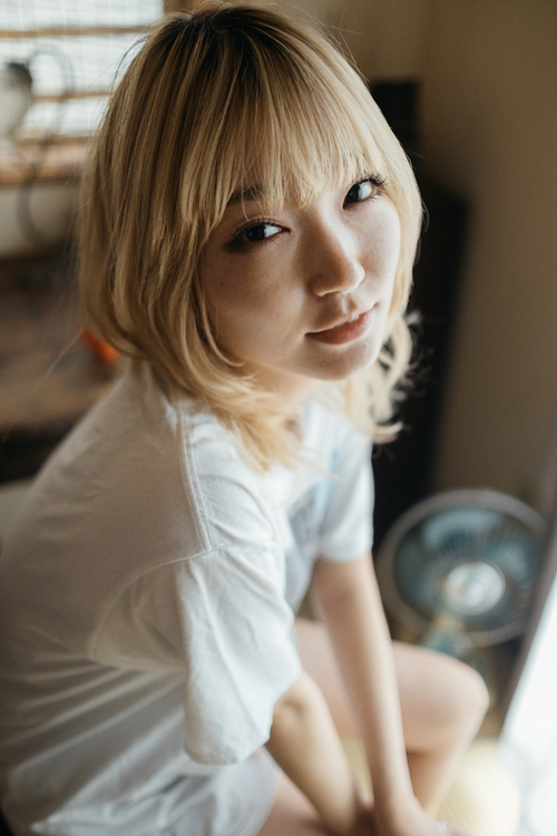 一般的に絞りは開放で撮るよりもやや絞って撮るほうが、解像感が増すと言われています。明るいレンズを買って嬉しくなって絞り開放で撮るのももちろんよいですが、ときにはやや絞って撮ると解像感の違いに気づくはずです。上の写真もフジノンレンズ XF23mmF1.4 Rで、絞りをやや絞ったF2.0で撮影した一枚です。瞳やまつ毛はもちろんですが、髪の毛一本一本まで解像感高く描写しています。「せっかく明るいレンズなのに絞って撮るとボケなくなっちゃうなぁ」と思われる方もいるかもしれませんが、背景をしっかりボカしたいなら思い切ってモデルさんに寄って撮影してみましょう。ボケは被写体との距離が近くなる程大きくなります。ただ、あまり近すぎるとモデルさんがびっくりするので、ほどほどに。