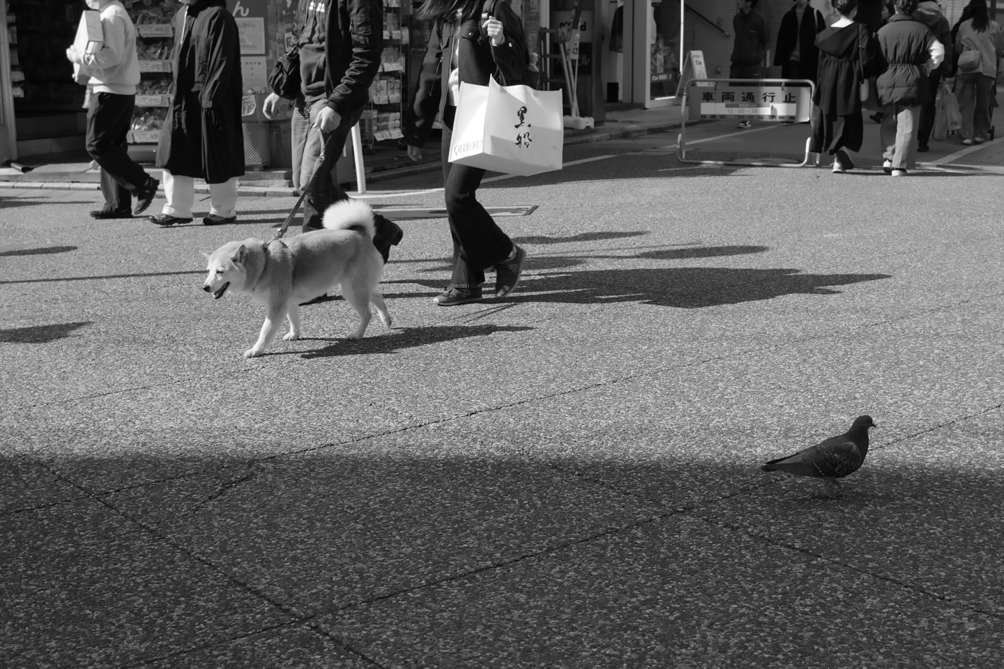 犬とハトどちらも無関心のように見える距離感の面白い一枚が撮れました。瞬間的に狙いたいスナップ撮影にはもってこいのレンズです。