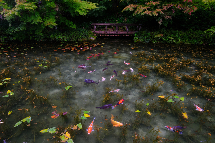 ここ数年で有名になった通称「モネの池」です。普段は観光客も多く、人が写り込まないカットはなかなか撮れないのですがこの日は雨模様で人も少なかったのがラッキーでした。雨に濡れながらの撮影でしたがボディ・レンズ共に防塵防滴対応だったので安心して撮影することができました。