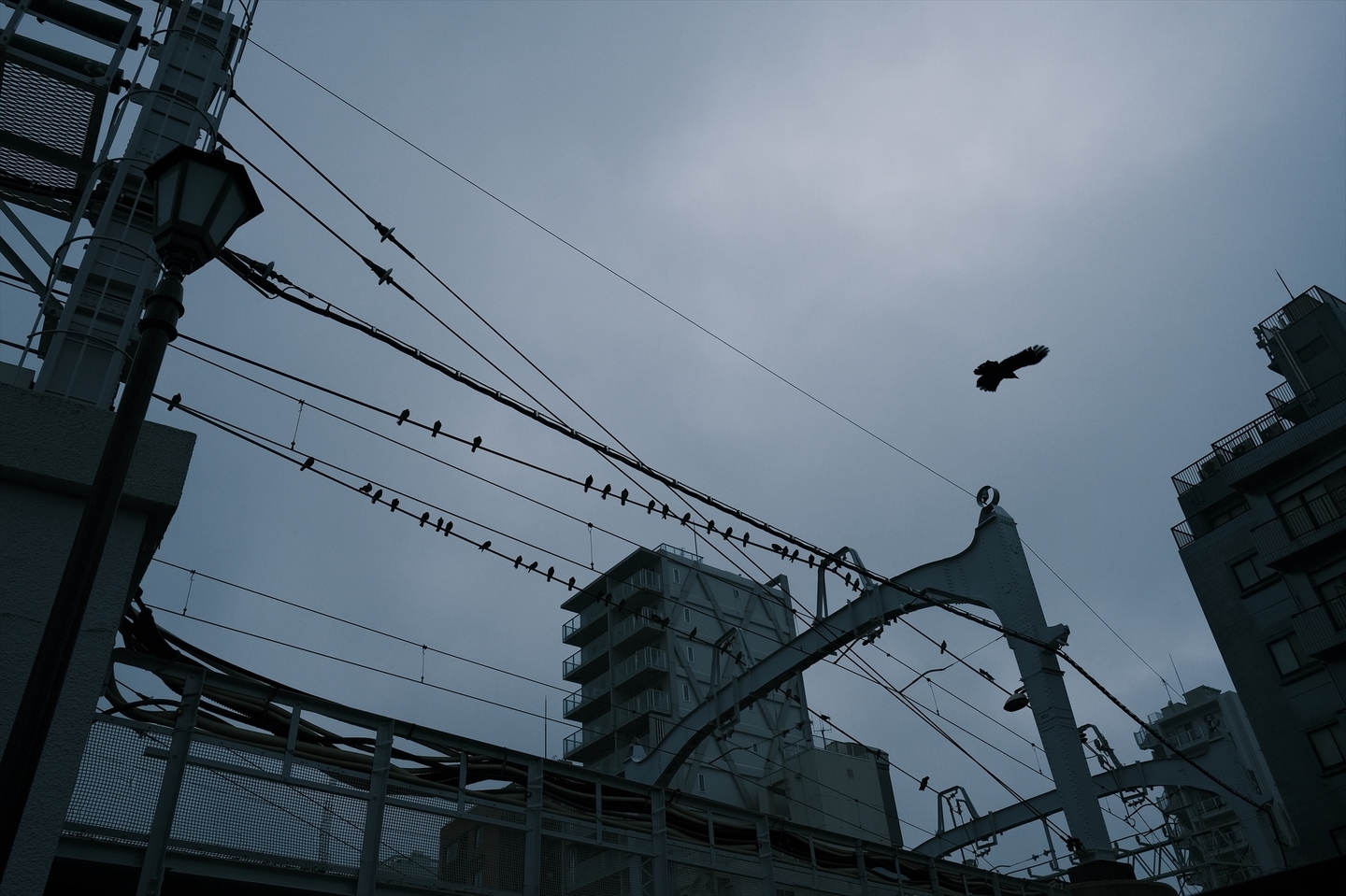どんよりとして暮れ行く雨の日の空は相当に暗いのですが、一本一本の線や雲の表面にもディティールが感じ取れるほどしっかりと写し込んでくれます。