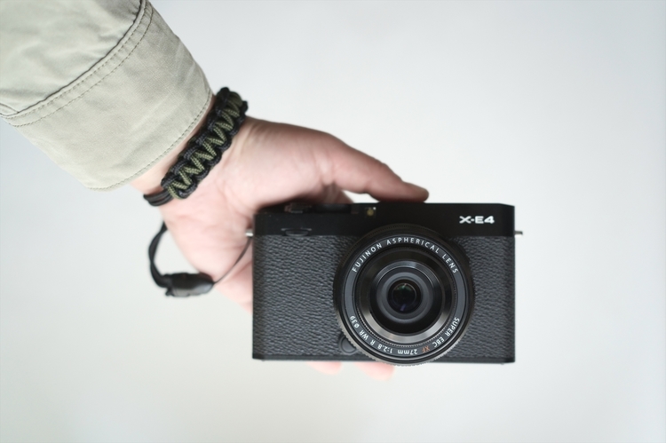 XFレンズシリーズの中で最も薄いパンケーキ型レンズであるXF27mmF2.8 R WRは、X-E4に取り付けると、まるでコンパクトカメラのような外観です。