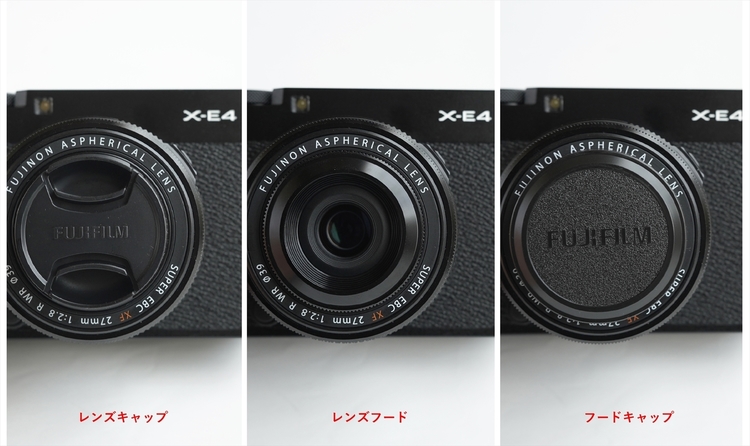 XF27mmF2.8 R WRの発売に合わせて、39mmのフィルター径に対応したレンズフードLH-XF27とレンズフードキャップLHCP-27も同梱されています。別売も用意されており前モデルのXF27mmF2.8にも取り付けることが可能で、装着すると見た目のカッコよさが格段にアップするので、これはかなりおススメです。