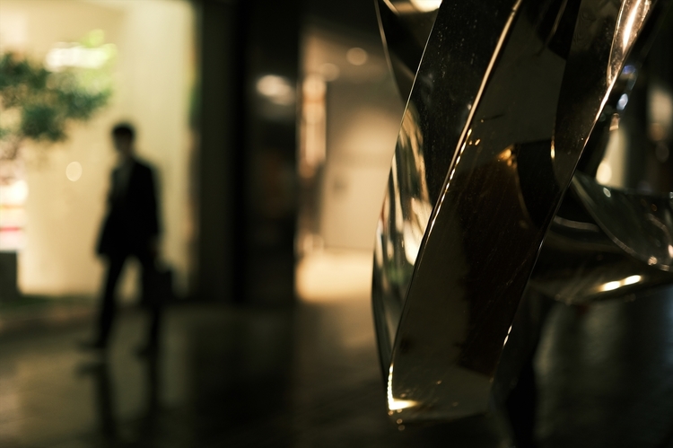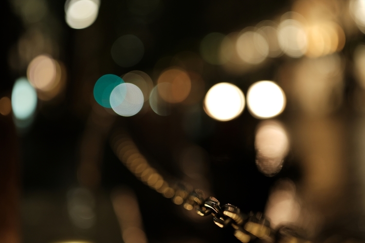 玉ボケは美しい輪郭を見せてくれます。チェーンに反射した小さな光が画面奥に行くほどボケながら背景に馴染んでいき、車のヘッドライト、ショーウィンドウも優しいニュアンスになりました。