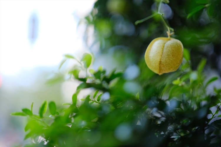 常緑樹の葉は色も強く透け感が出にくいですものが、優しく前ボケとなり、葉に反射した光は柔らかな玉ボケとなりました。最短撮影距離30cmで捉えるとその特徴が掴めます。