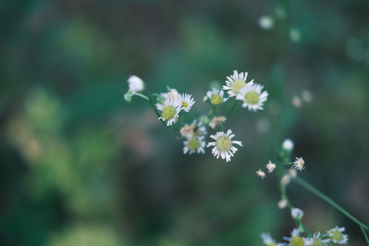雑草の中に咲く野花は背景から分離して浮き上がるように。小さなつぼみはかわいいボケとなってアクセントになりました。こうして画面全体にニュアンスが感じられるところも気に入っている理由の一つです。