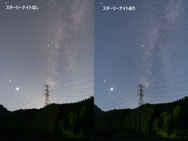 PRO1Dタイプのフィルターは薄枠タイプのため、フィルターの重ねがけにも対応しています。星景写真では人気のある光害カットフィルター「スターリーナイト」などとソフトフィルターを併用することも可能です。