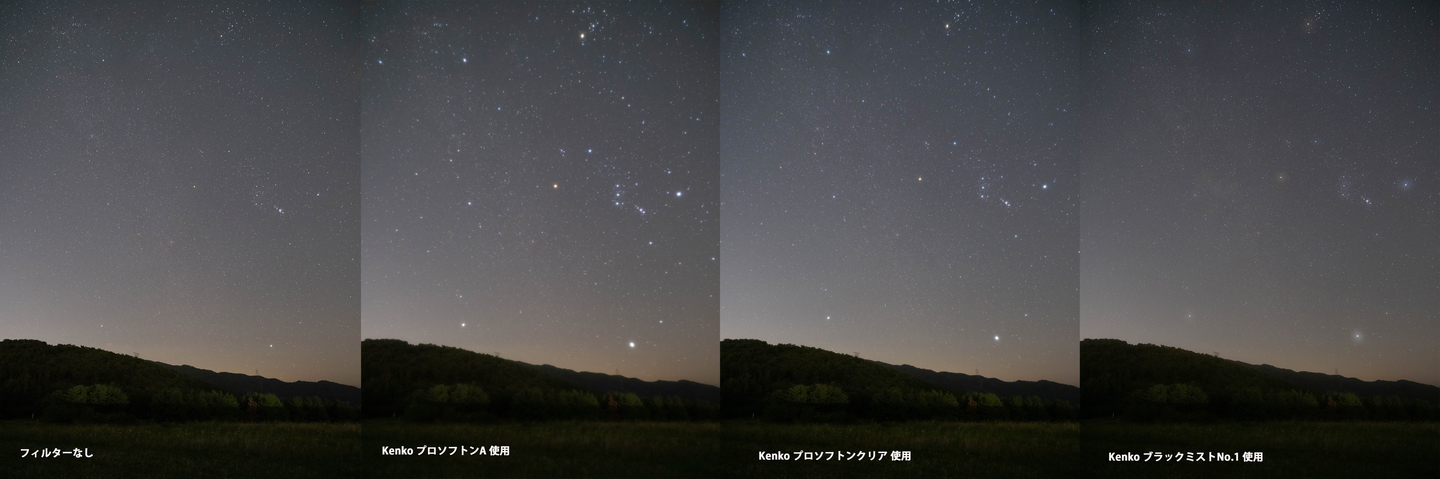 星の周りに不思議なゴーストが発生したり、星がおにぎりの形になったり、星が不鮮明にぼけたりといった現象が発生するものもあります。星をきれいな円で表現できる、という描写で人気があったのがKenkoのソフトフィルターなのです。Kenko製ソフトフィルターは星景写真の写真表現を広げる最も優れたものとして、長らくユーザーから愛されてきたのでした。