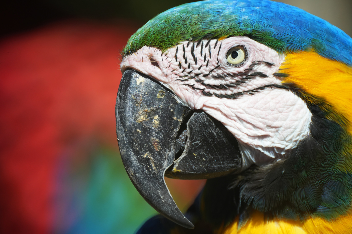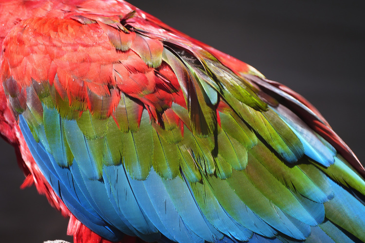 オウムのキレイな羽根をアップで撮ってみました。もともと「SZ 500mm F8 Reflex MF」の発色は少しニュートラルなので、少し彩度を上げて撮影してみました。