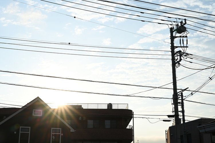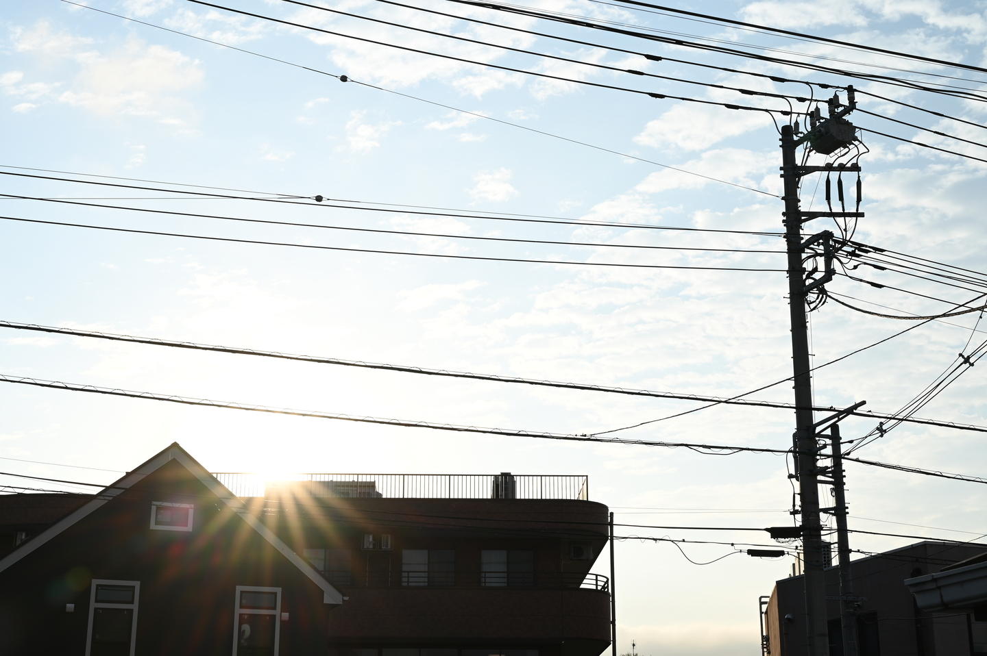 建物の向こうから昇ってくる朝日を、ニコン Z 6IIにNIKKOR Z 50mm f/1.8 Sを装着して撮影しました。レンズが優秀なため、目立ったフレアやゴーストは出ていません。