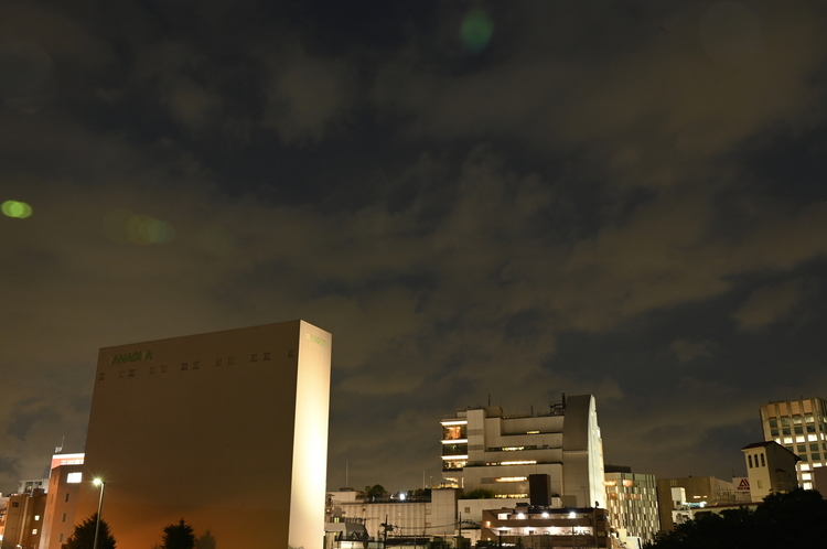 夜の街をニコン Z 6IIにNIKKOR Z 24-200mm f/4-6.3 VRを装着して捉えました。フードを外して撮影したので、画面右側の光を拾って、左側隅にゴーストが出現しています。強力な光源がある場合、本来はフードを装着して撮影することをオススメします。