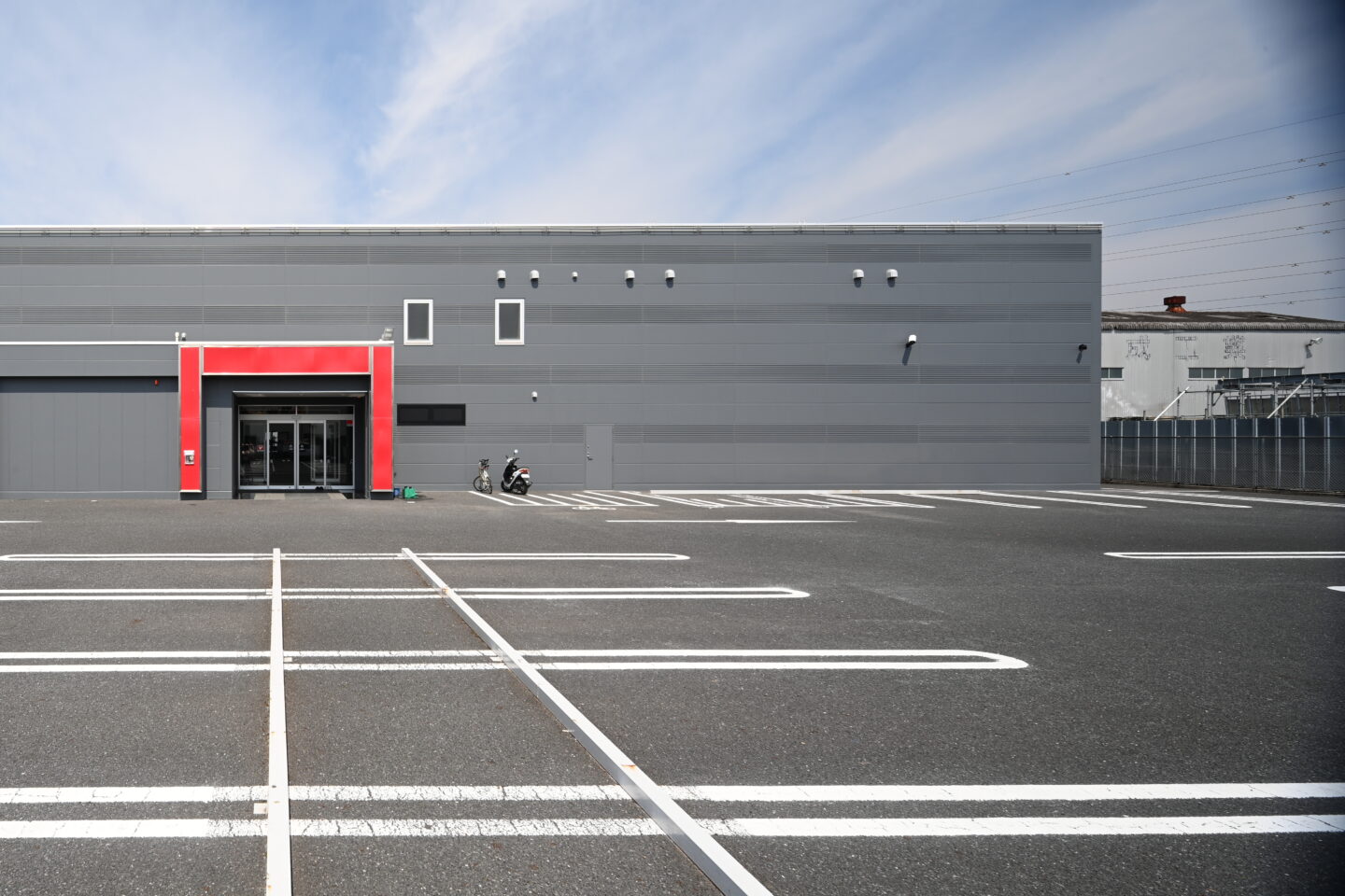 20mmレンズの画角では納めきれない横長の建物。中央にある出入り口の正面にカメラを据え置き、正対する形になるように水平垂直を合わせて撮影。その後、左右それぞれの最大シフト量(左右それぞれ11mm)までレンズをシフトさせて撮影し、中央部の撮影画像とこれらをパノラマ合成する。