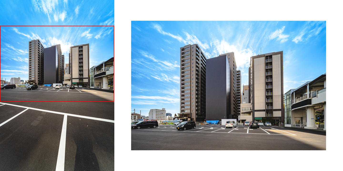 9mmの画角を活かして上下をカットしてワンショットパノラマも楽しめる。展望台などから撮影した一枚を16:9や16:8のアスペクト比にトリミングすることでパノラマ撮影した様な一枚に。通常の広角レンズで複数枚撮影してパノラマ写真を生成すると、繋がりが甘くなったり歪みが目立ったりすることがあるが、ワンショットで写すことで繋がりも歪みもどちらも気にすることなく撮影できるは嬉しい。このレンズのために高画素機が欲しくなる人も出てくるのではないだろうか。