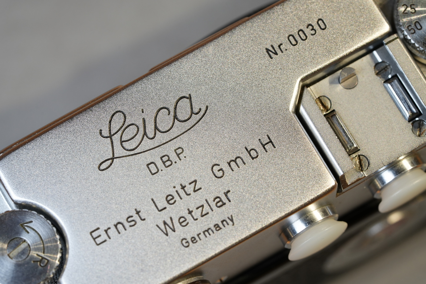 ライカM3の発売年は1954年。その前年および前々年に製造されたプロトタイプということで、このカメラのトッププレートには型番であるM3の刻印がありません。そっけなくNr.0030と番号だけが記されています。すなわちプロトタイプ30号ということですか?