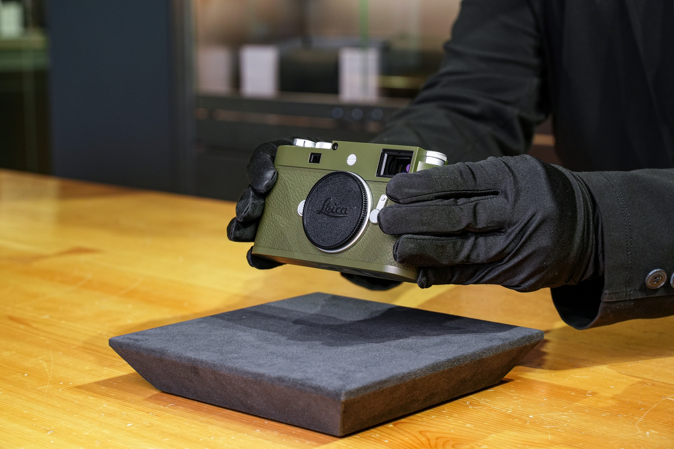 「ライカのオリーブ色のカメラは、保護色に塗ることで実用性を高めたという意味で軍装品や探検用品として位置付けられていたようです。過酷な自然環境や戦地での使用が想定されていて、視認性を抑えて環境に馴染ませるための一種のカモフラージュとしてオリーブ色が選ばれていたという経緯があると思いますが、今となってはファッションアイテムの一部であったり自分の個性を出すための色になっています」とのこと。
