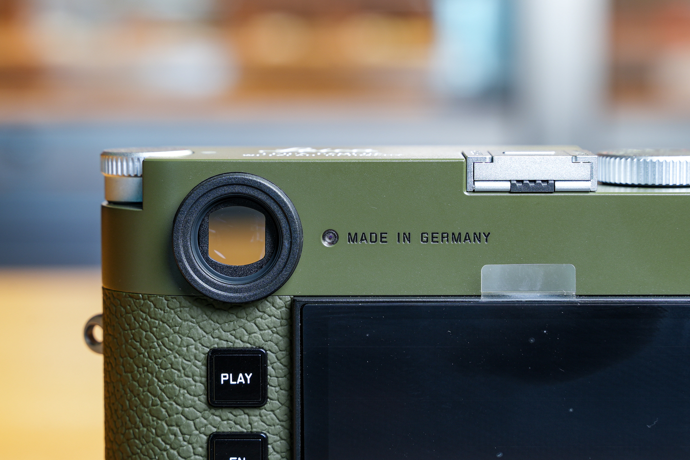 背面のボタン類はシルバーではなく黒で、MADE IN GERMANY表記にも黒いペイントが入れられています。ライカM10-Pサファリでは文字に墨入れはされていなかったと記憶していますが、このあたりは好みの分かれるところかと思います。