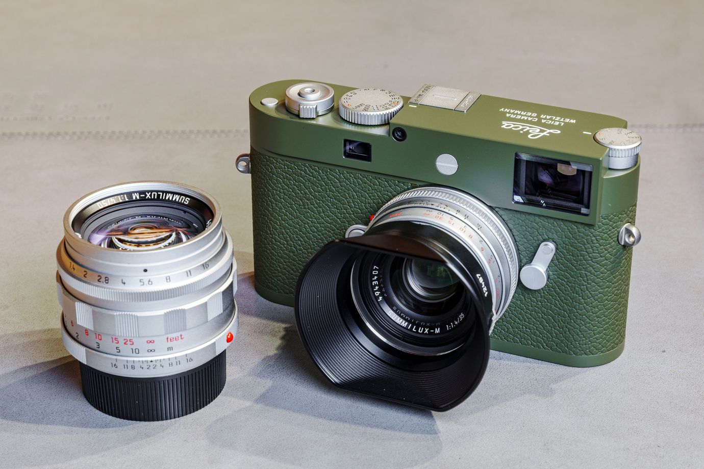 ライカM11-Pサファリに似合うレンズは?という問いかけに対する答えとして出てきた2本のレンズ、それは復刻版のズミルックスM35mmと50mmで、いずれもシルバー仕上げのもの。コーディネートとしてバッチリだと思いますが、逆にこのカメラに黒いレンズをつけると“ヒゲが濃い人”みたいな印象になりますよね?