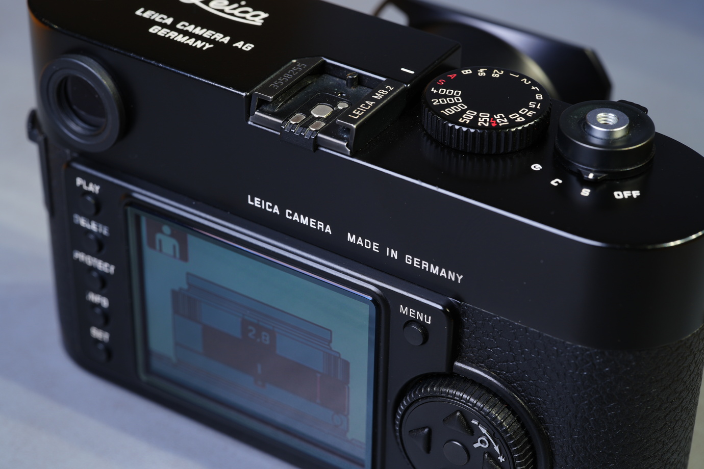 「M11などと比べるとシャッター音が大きいですが、シャッターのチャージ音も含めて撮っている!という実感がわくシャッターだと思います。愛らしいポイントとしては撮影残り枚数のカウンターがあり、これは他のM型にはない部分です。もともとはSDカードしか使えないカメラでしたが、ファームウエア2以上であればSDHCが使えるようになりました。でも32GBまででそれ以上の容量のものは受け付けません。ですから中古を購入する際にはファームウエアも大事なポイントかなと思います」