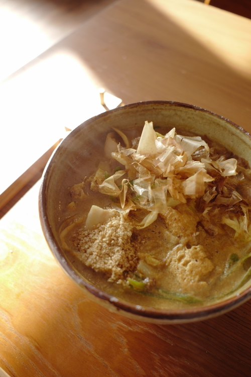 店主の渡辺健一さんにそうお伝えすると、「出汁は、関東出汁と関西出汁の両方を使っていて、カツオとサバをがっつり効かせている中に、たっぷりの豆乳と胡麻が入っているから優しいんです。」とおっしゃる。優しい中にパンチが効いていましたと伝えると、ここの味にするのが大変でしたとニッコリ。全体感はとっても柔らかくまとまっているのに、まるでお肉の出汁で食べているようなパンチ力があるカレー南蛮。本当に美味しかった。
