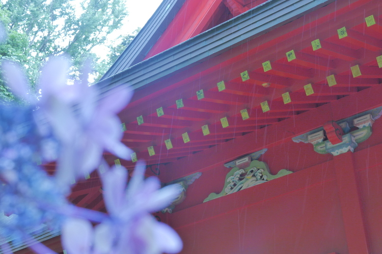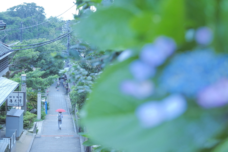雨の時に写真を撮るのを嫌がる人は多いけれど、私はいつも雨がもう少し降ってくれたらなあと思う。そうすれば雨とアジサイを一緒に撮れるのになあ、この時もこんなことを願いながらシャッターを切っていた。少しすると、本当に雨が強くなってざあざあと音を立てて降り出した。