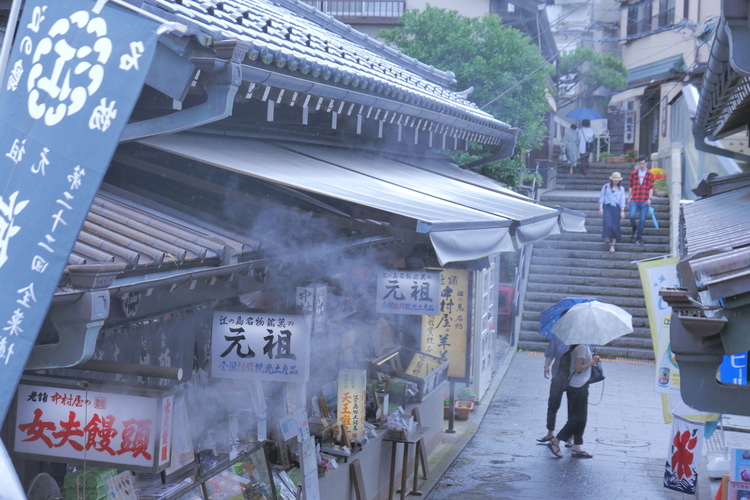 江ノ島は小雨、そして、強風。今日は雨の江ノ島を撮りに来たのだからいいの。雨がいいの。強風はちょっと大変だけれども。まずは江ノ島神社でお参りして、猫たちと遊んで、中村屋羊羹店の海苔羊羹を食べて、富士見亭のテラスでかき氷(レモン味)を食べながら海を見てボーっとする。江ノ島に行くといつもこのルーティンになる。このルーティンを終えて帰宅すると、いつも気持ちがいいんだ。何故か分からないけれど、いつもとっても気持ちがいい。江ノ島は、私のパワースポットなのだと思う。