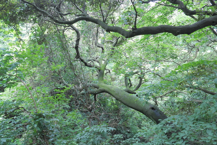 10分くらいすると、さっきの雨と雷がウソだったかのように空が明るくなって小雨に変わった。まだ遠くに見える灰黒い雨雲と雷の音を聞きながら帰り道を急いだ。途中、脇の木々の葉がまるで星のように輝いているのが見えて、思わず足をとめてシャッターを切った。遠くからウグイスの声がする。すぐ近くからひぐらしの声が聞こえる。もうすぐ梅雨が終る。夏が来る。