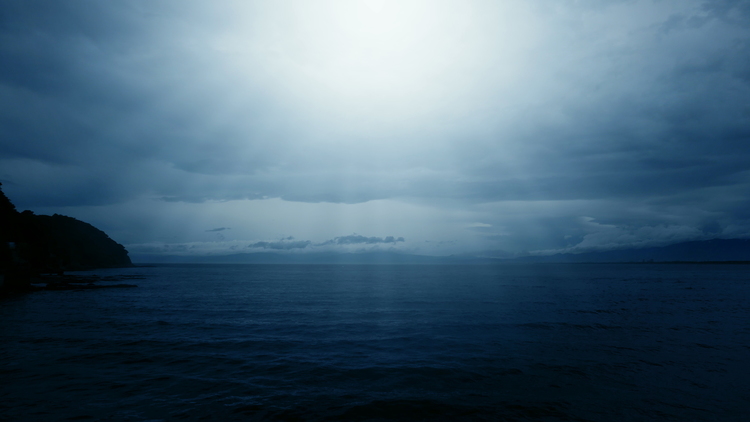 ここのテラスから見る海が好きだ。水平線がすーっと通っていてでもちょっとカーブしていて、日本は島国なのだなと思う。そして、ここは地球なのだと思う。そんなことを思いながら海を眺めていると、空がピカッと光り出して、横殴りの雨が降り出した。バリバリバリッ、ドドーーーン!10m先に落ちたんじゃないかと思うほどの雷の轟がして、目を丸くする。お店にいる人たちもざわつく。