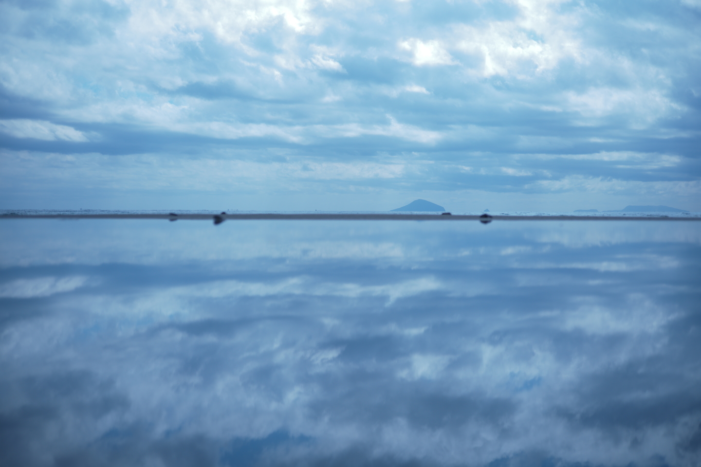 曇りの景色も美しいけれど、でも、楽しみにしていた連載の第一回目だから、晴れた青い空と青い海が撮りたかったなあ…とトボトボ歩いていると海水の水溜まりに足が浸かる。ポチャッ。ああ、やだ、空がどよんとしていてさらに水溜まりに足まで浸かっちゃってブーツがびっしょり…お気に入りのブーツなのに…もう…え、水溜まり。水溜まり。あ、そうだ。やった、水溜まり。嬉しい!