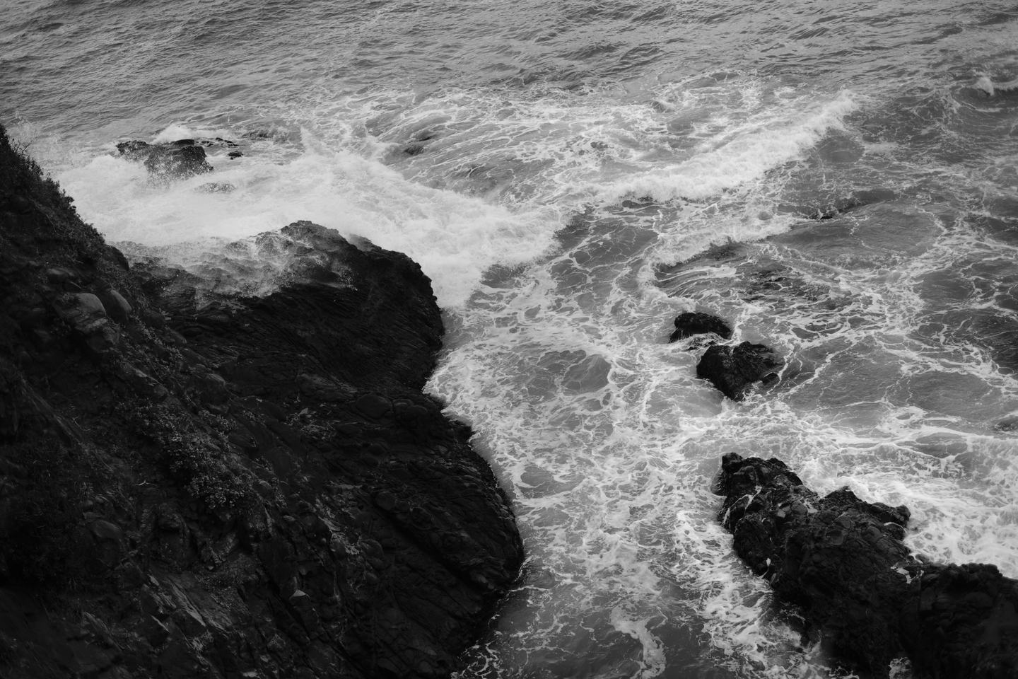 ぶ厚い雲の空と、荒々しい海の写真が撮れる。