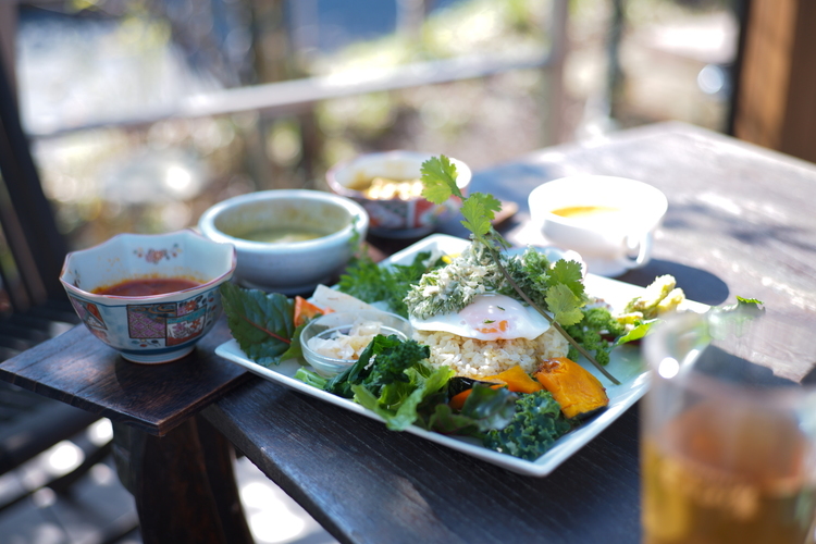 野菜を自家栽培しているというお店が気になった。今日開いているか電話をしてみる。電話口では、はい、やっていますよ~と明るい女性の声が聞こえた。「やさい料理の台所むーみんの森」という可愛らしい名前のお店。