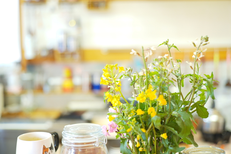 自家栽培の畑は、今年さらに大きく広げる予定とのこと。写真を見せていただくと、整頓された畑はとても美しく、ここで育つ野菜たちは幸せだろうなあと思った。「無農薬だから、最初からしっかり作らないとすぐ虫が着いちゃうから。」とオーナーの鈴木敦子さん。お店のカウンターには、先ほどいただいたルッコラのお花が飾られていた。