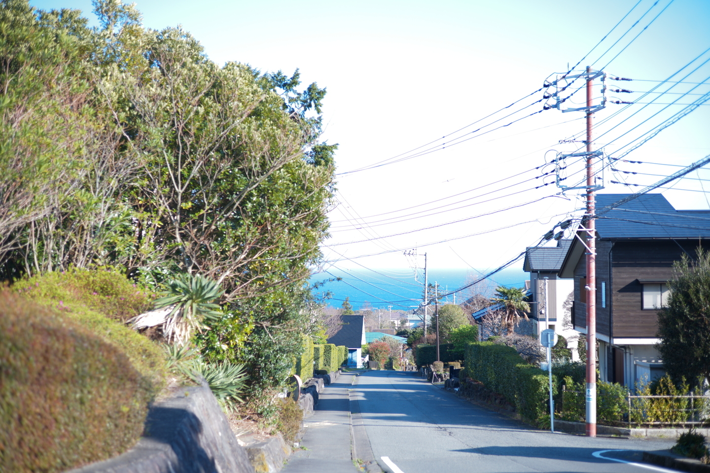そのカフェは、地図を見ると富戸駅と城ケ崎海岸駅のちょうど真ん中あたりにあって、でも若干富戸駅から近そうに見えたので、富戸駅でえいっと降りてみる。駅で降りたのは私一人。駅の周りにも誰もいない、小さな駅。Google mapを開いて検索すると、お店まで2kmちょっとと出てきた。