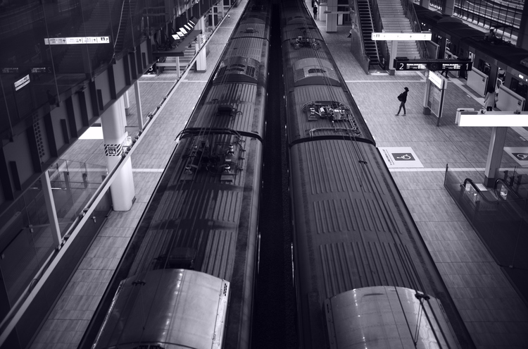 今日は、いろいろな東京を撮りたい。JR新大久保駅から山手線で新しく誕生した山手線の高輪ゲートウェイ駅へ。噂にはよく聞いている話題の駅、初降車。天井に張り巡るトラスがとても美しくて、光が良く入る明るい駅。トイレもホテルのようにピカピカで美しかった。その中で私が特に気になったのは、いつもは見ない電車の上部が二つ並んでいた瞬間。電車の上って、こんな風になっているのだなあ。窓から見える景色が薄暗くなってきた。もうすぐ夜が来る。