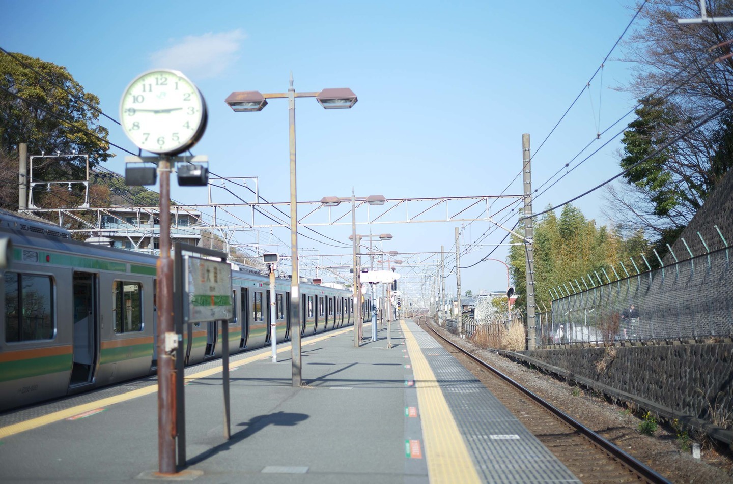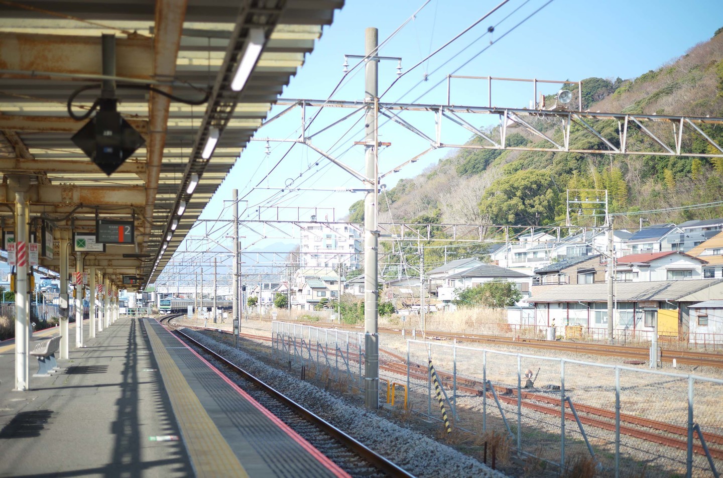 JR二宮駅のホームに降り立つ。いつものんびりとした空気が流れているのどかな駅。駅前に山があるのが好きだ。ホームからも吾妻山(あずまやま)が見える。