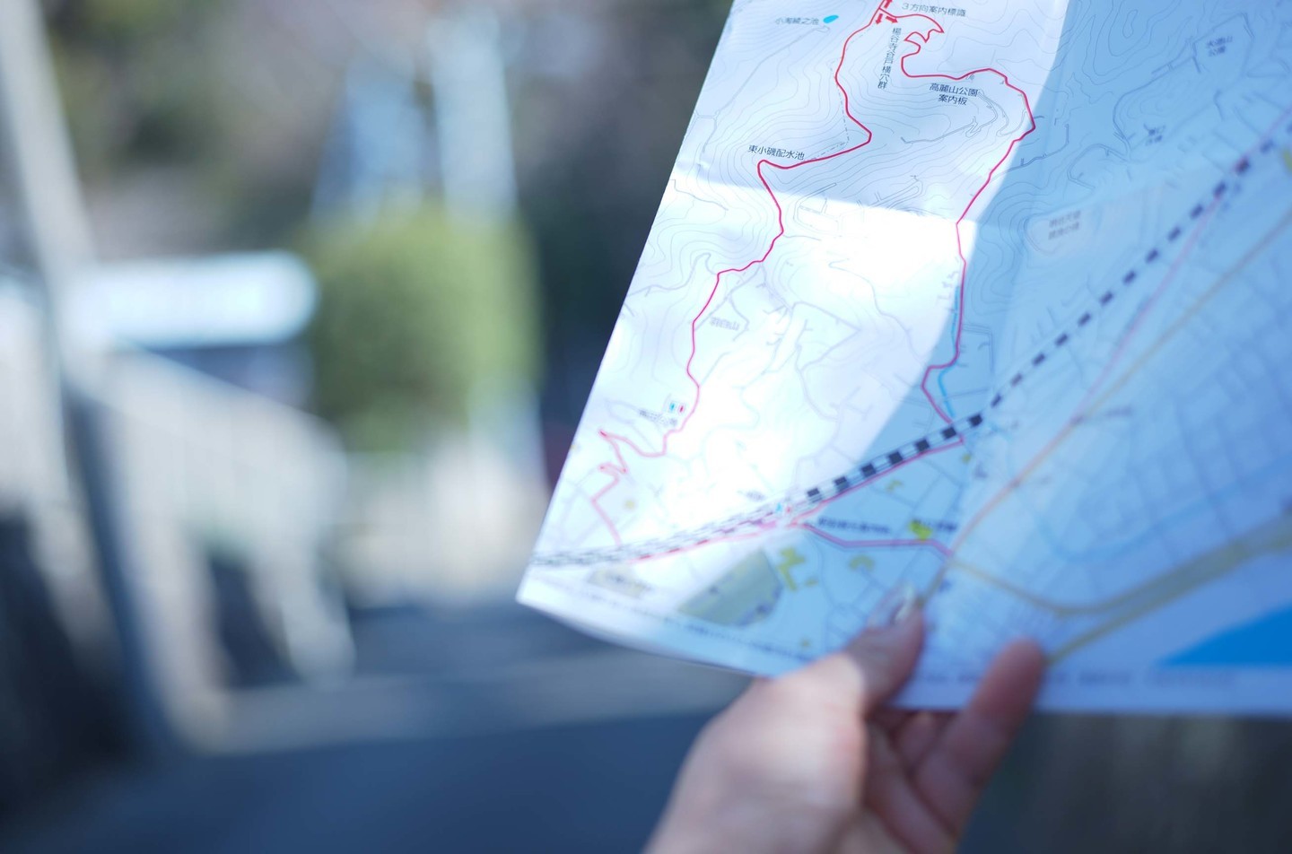 駅前にある観光協会の前のラックに湘南平のハイキングの地図があった。シンプルな地図に、3つのルートが赤い線で記されていた。行きは「高田公園コース」という南から北に向かうルートで行くことに決めた。理由は、帰りに寄りたいカレー屋さんがあるから、そこに近いルートとは違う道で歩いてみたいと思ったから。帰りは「高来(たかく)神社コース」で高麗山(こまやま)を通るルートで東に向かって平塚のカレー屋さんに寄って帰って来よう。高田公園コースは、大磯駅から湘南平まで約2.3km、高来神社コースは湘南平から大磯駅まで約3.6km。