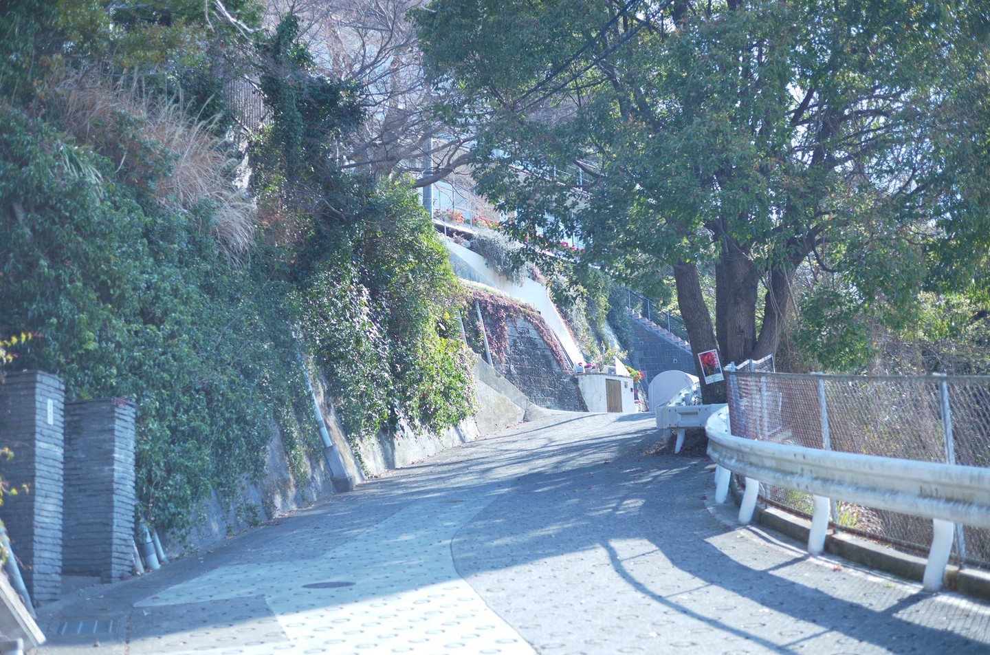 線路沿いからガードをくぐって、住宅街を歩く。大磯の住宅街の道はとても細い。車が通るのがやっとというくらい細い道も多い。少しずつ坂が増えてくる。
