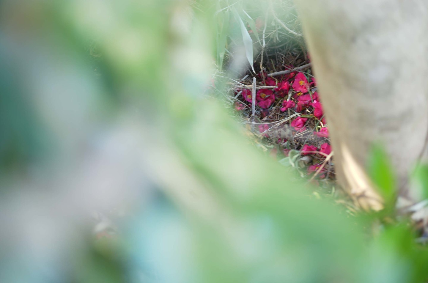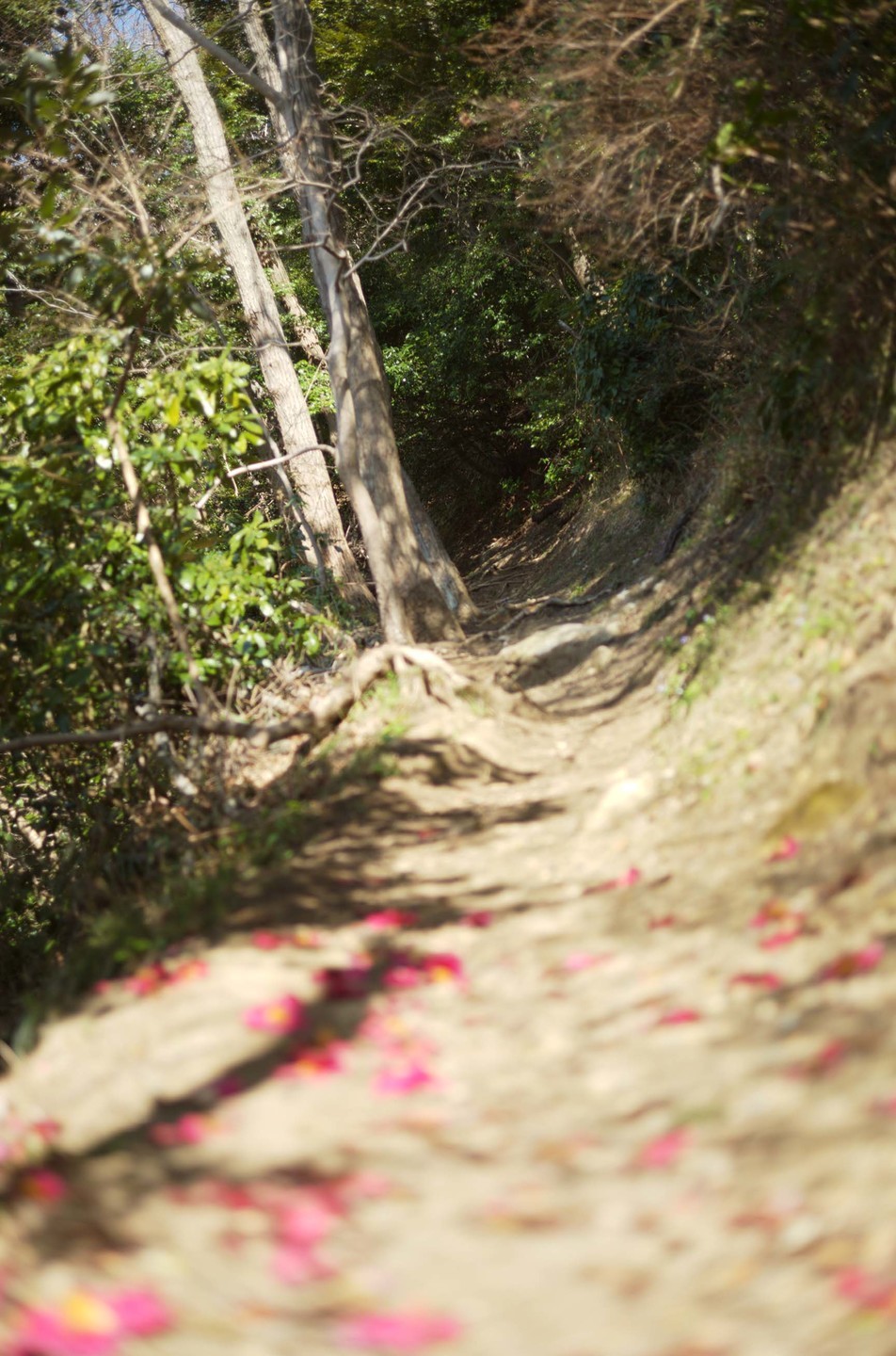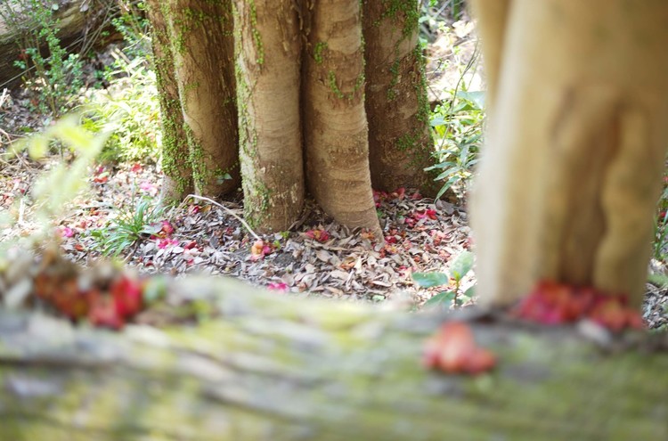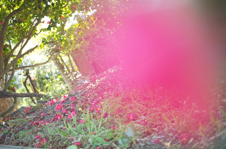 この時期に町や山を歩くと、椿のお花がたくさん落ちているのを見かける。椿の絨毯のようになっている場所がたくさんある。カメラを持っていると、落ちているお花も美しいと思える。