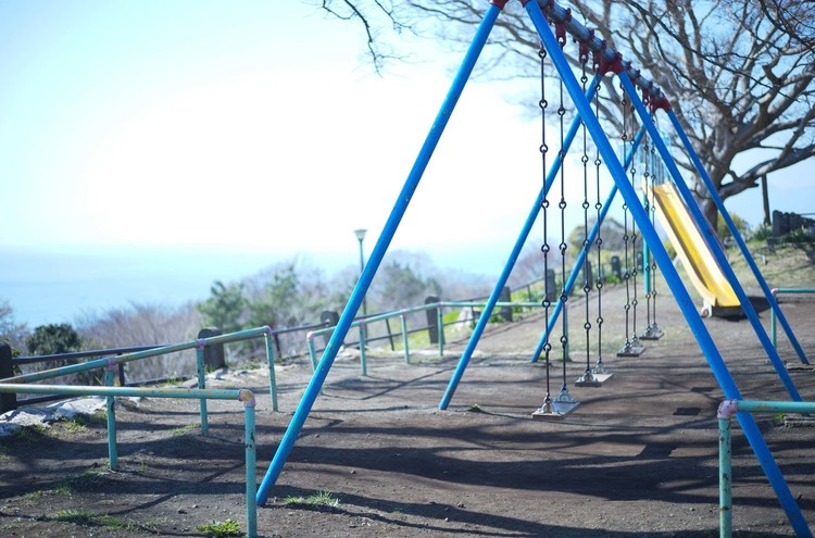 海を一望できるブランコに乗りながら、太陽を撮った。