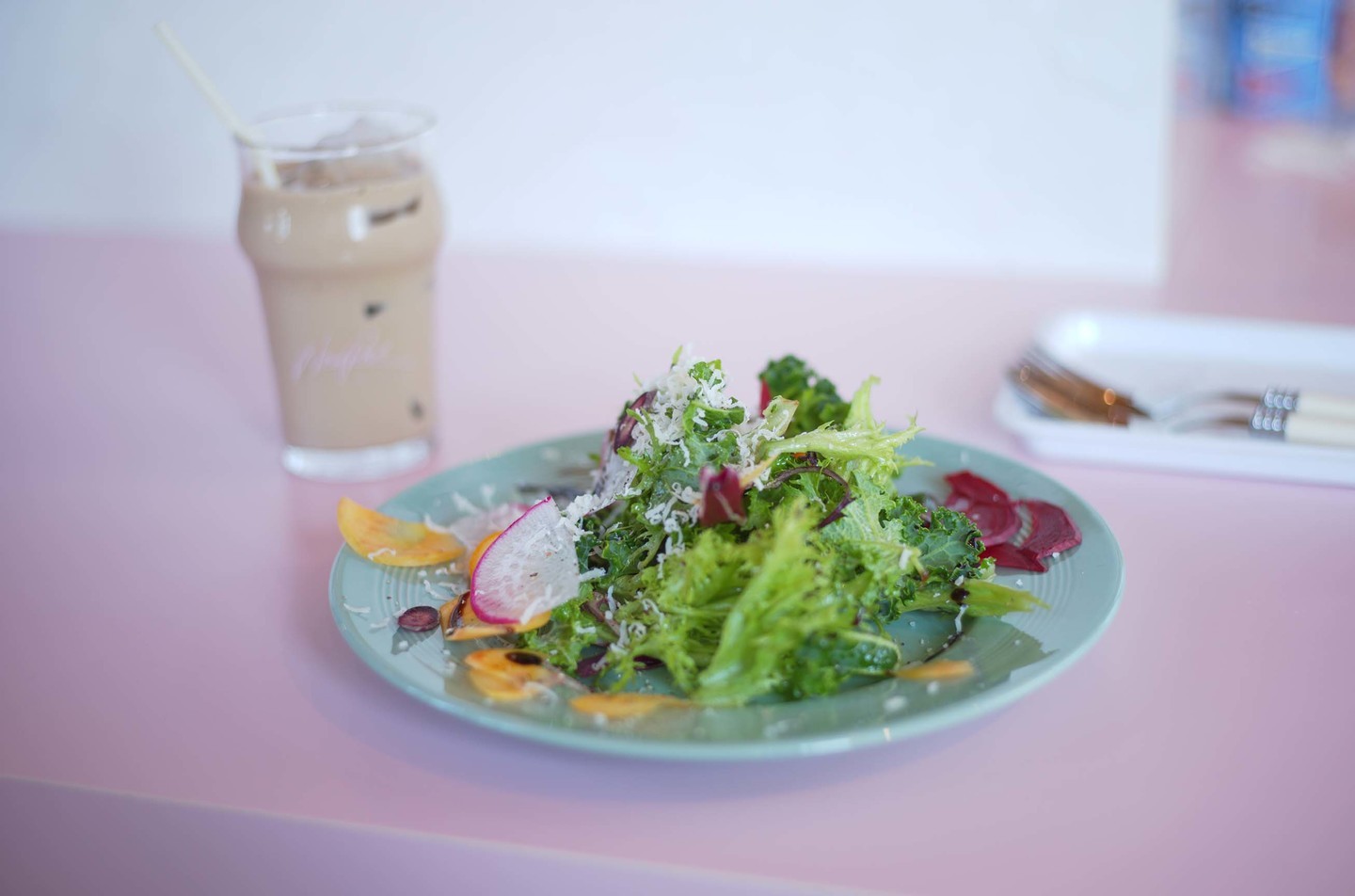 カウンターの色も、お皿の形も、スプーンも、もちろん盛り付けも、可愛い。すごく好き。