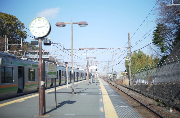 東海道線に乗り込むと、ほとんどの席が埋まっていた。いつも、座席にライカカメラを置いて写真をとるのだけれど、今日は難しいみたい。乗車時間は4分。一駅。