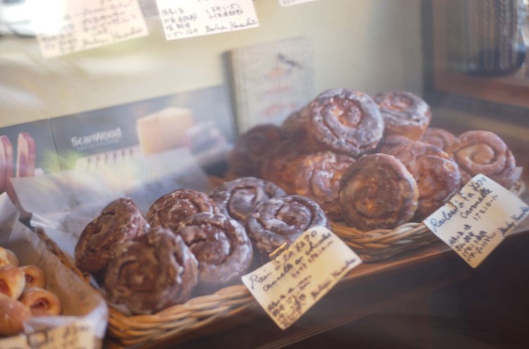 シナモンロールを二つ購入。そう、カレーのスパイスで使われるシナモンがたっぷり入ったパン。以前デンマークに留学され、デンマークの家具屋さんに勤められていたオーナー山下雄作さんが作り上げた北欧テイストの空間は美しくお洒落。全国からここを目指して訪れるお客さんでパンが早々に売り切れてしまうこともしばしば。雑誌にも引っ張りだこの大人気店だ。お店の食堂の壁には夫の写真を飾って下さっていて、私の写真集を置いてくださっている。本当にありがとうございます。