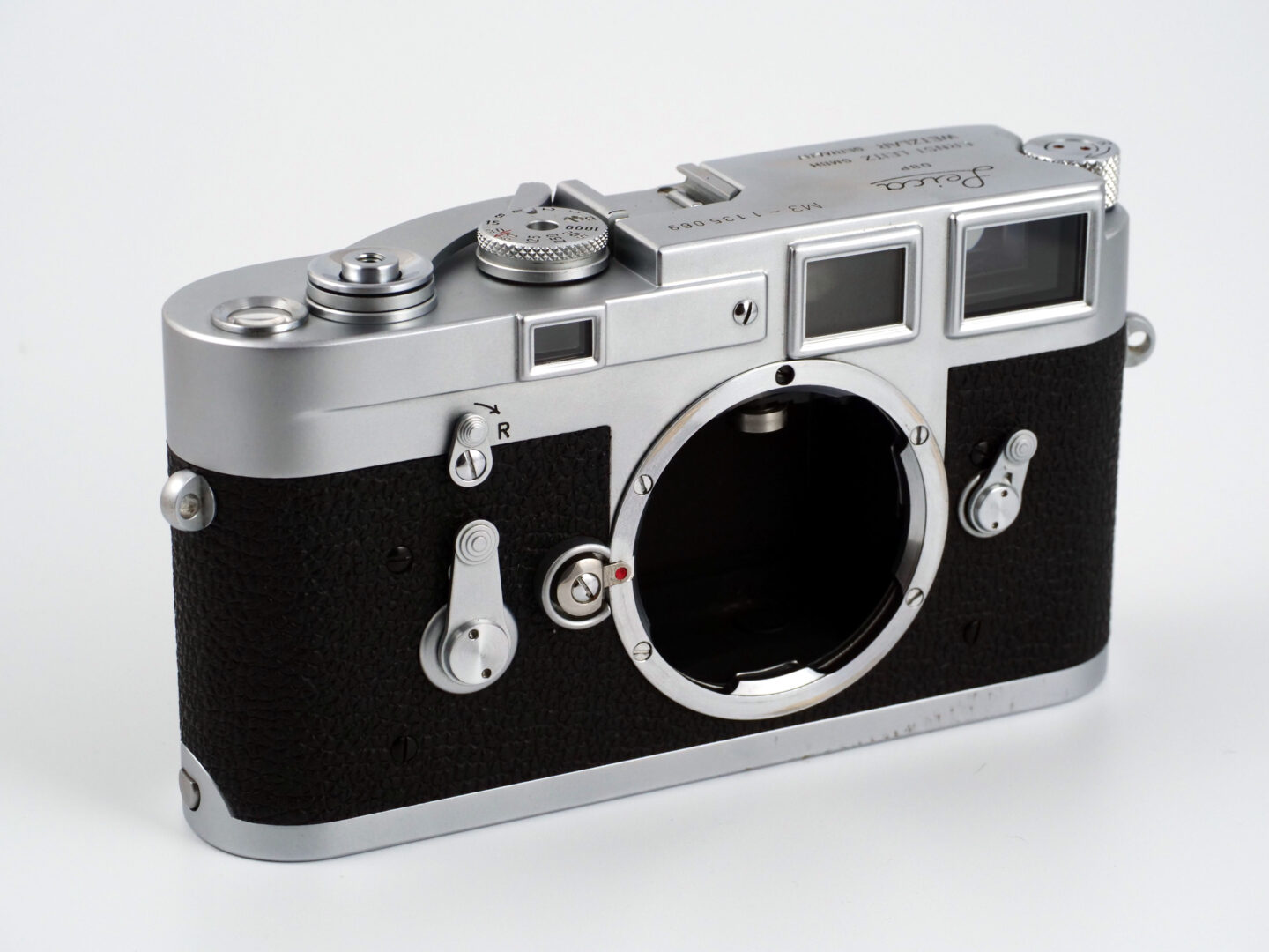ライカM3は、旧西ドイツ時代のエルンスト・ライツ社が1954年に発売開始した35mm判の実像式レンジファインダーカメラです。極めて鮮鋭な二重像合致式のピント合わせと装着したレンズによって自動的に切り替わる撮影フレームのコンビネーションに加え、従来のカメラで一般的だったノブ式でなくレバー式のフィルム巻き上げを採用したことにより、速写性の高いカメラとしてスナップショット技法の礎となった傑作機です。