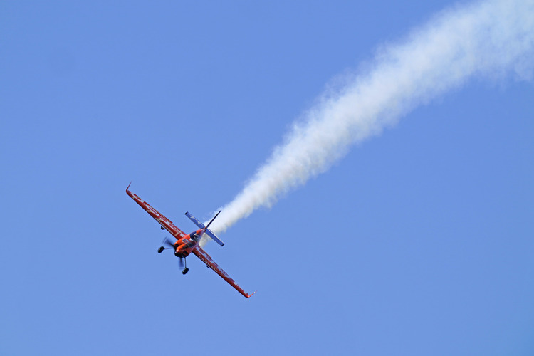 エアレースのプロペラ機を撮影する上で、考慮したいことがシャッター速度です。当然機体の動きが速いので高速シャッターで撮影するのですが、速すぎると機体に動きを感じられない写真になってしまいます。