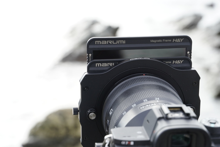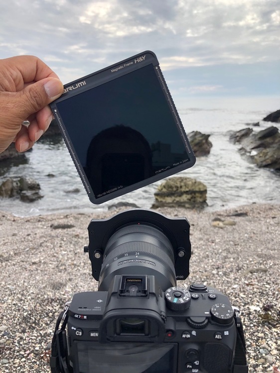 この重ねて使用できるメリットがとても大きいと思います。 PLフィルターを回転させ、位置が決まったらNDフィルターやハーフNDフィルターをホルダーの前面からピタッとマグネットで貼り付けるだけですぐに撮影することができます。
