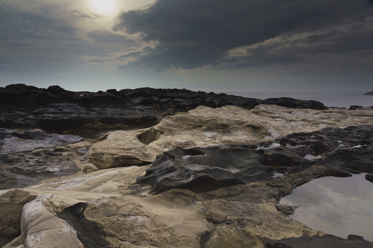 そこでハードグラデーションND16のグラデーション部分を水平線のあたりにセットして撮影すると、空の明るさを抑えて岩肌もしっかりと表現でき、水面のきらめきも表現できました。