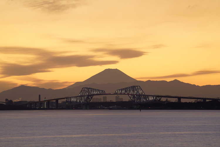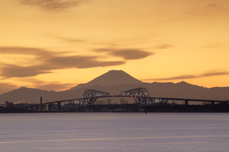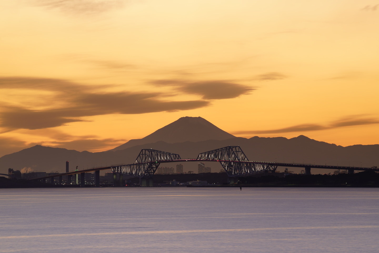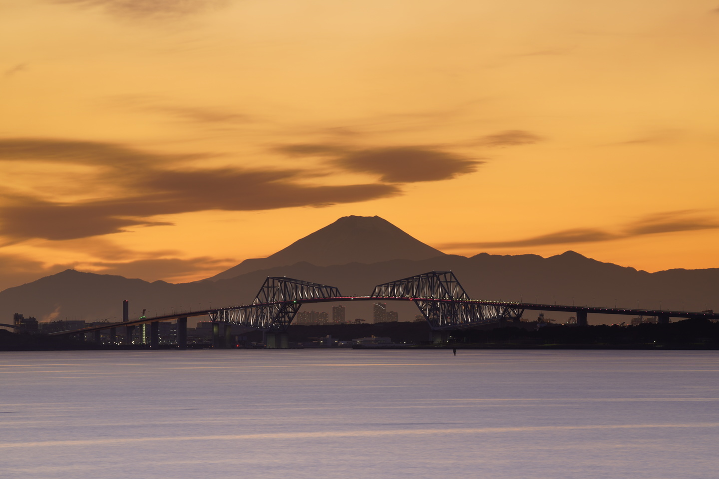 こちらは、富士山をバックにゲートブリッジを撮影したものになります。最初はフィルター無しの写真です。