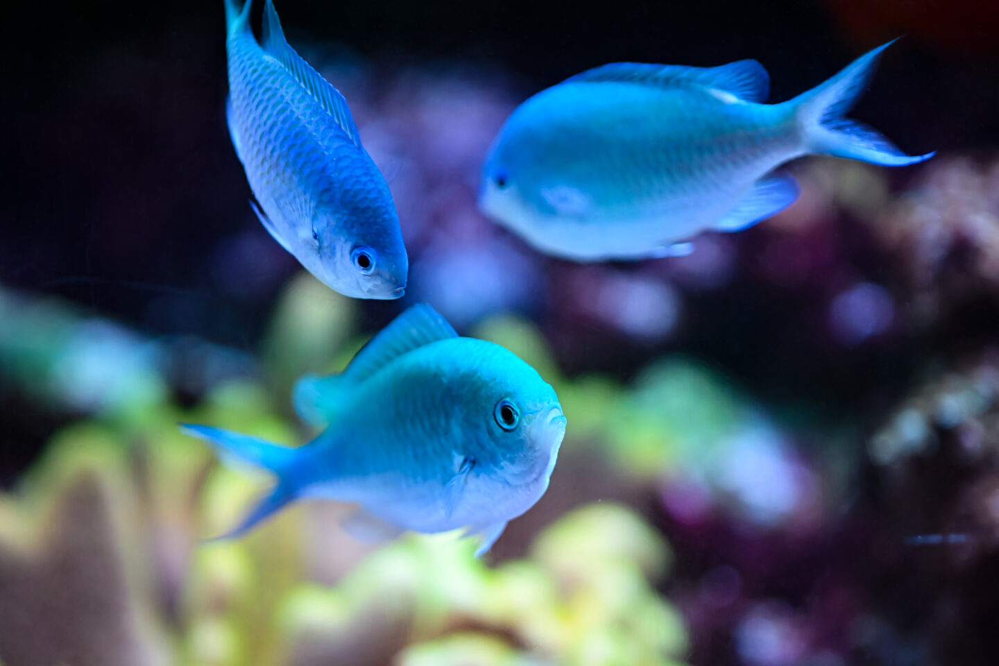 水族館の水槽の中の魚を撮影しました。ピントは、中央下の魚の目の前方に合わせています。被写体に近付いて撮影すると、ボケのニュアンスが最近のデジタル用レンズと違うことが、はっきり見て取れると思います。絵の具を平筆でペタペタと塗ったような質感のボケは、ピントを合わせた主役の被写体を立体的に見せてくれるのに役立っています。