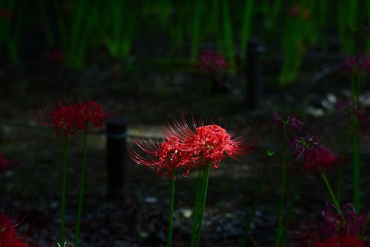 写真は中心の彼岸花に光が差し込み、まるで舞台のライティングのようなロケーションでした。「カメラは赤い被写体が苦手で飽和が・・」なんて言われますが、さすがフルサイズ。色調豊かに撮影できました。