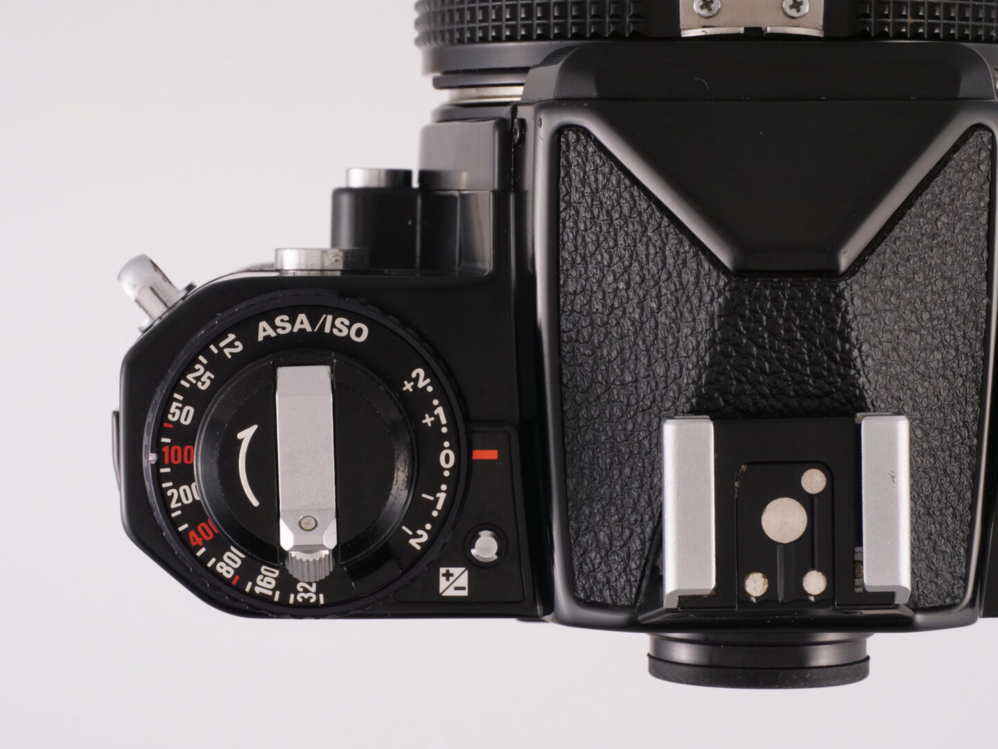 先輩モデルのニコン FEの発売は1978年。シンプルニコンをキャッチフレーズに掲げ、絞り優先オートを実現しながら姉妹機のニコン FMと同等のサイズ感で持ち歩きしやすいことから、初心者だけでなくプロのサブ機としても活躍したモデルです。ニコン FEでは露出補正ダイヤルを持ち上げて操作する必要がありましたが、ニコン FE2ではロック解除ボタンを操作するだけで稼働する仕様とし、フラッシュ撮影時にTTL自動露光に対応するなど使い勝手を向上させています。