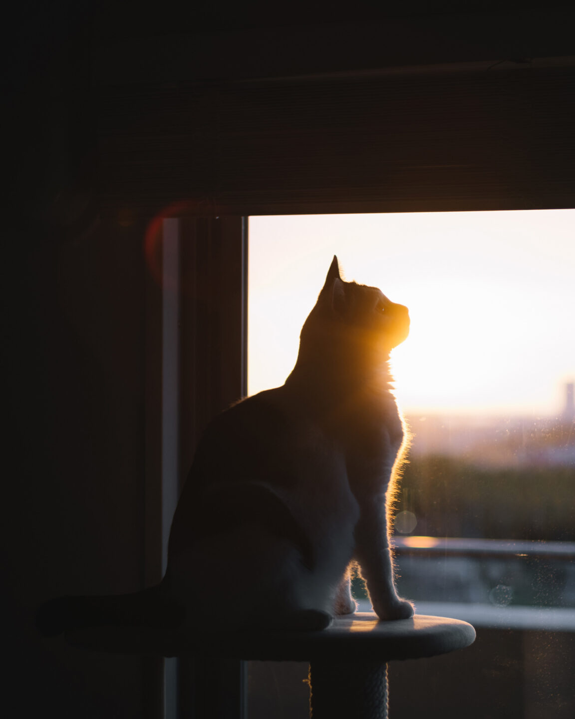 飼い猫の場合、撮影場所はほとんどが室内になります。ということは、光が遮られるなど暗さの問題が出てきます。我が家も採光が取れる窓が西向きのため、西陽が入る午後以降でないと少々暗いです。そんな時は、猫が落ち着ける空間を部屋の明るい場所に作ってみましょう。リラックスした表情を明るい場所で撮ることができるので、撮影しやすくなります。