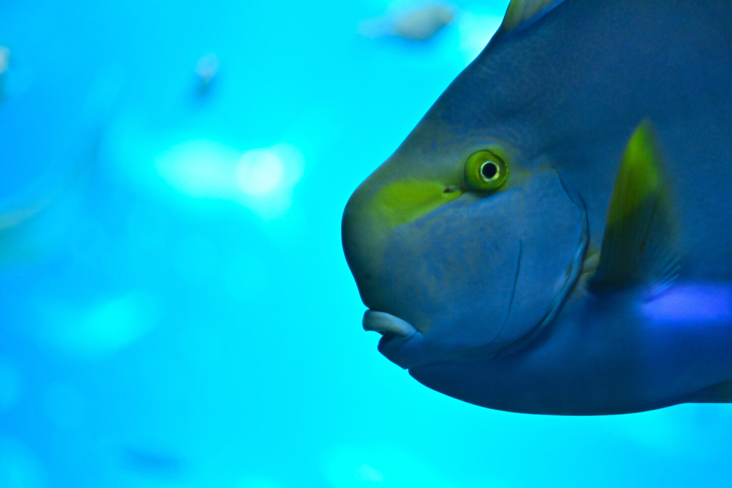 お得意の水族館では、魚のアップをポートレートのように撮ってみました。主役の魚の眼にピントを合わせて絞り開放で撮影すると、背景の魚たちは水の色と同化して、ふんわりと溶けるようにボケてくれました。水族館の水槽の中は、遠近感を感じられるような物がないことが多いので、背後の被写体を大きくボカしてくれるレンズはとても重宝します。